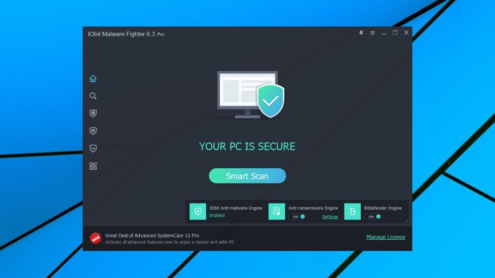 Featuring the world leading Bitdefender antivirus Engine, IObit Anti-malware Engine, and Anti-ransomware Engine, IObit Malware Fighter 6 can remove the latest spyware, adware, ransomware, Trojans, keyloggers, bots, worms, hijackers and viruses with ease.PROTECTED